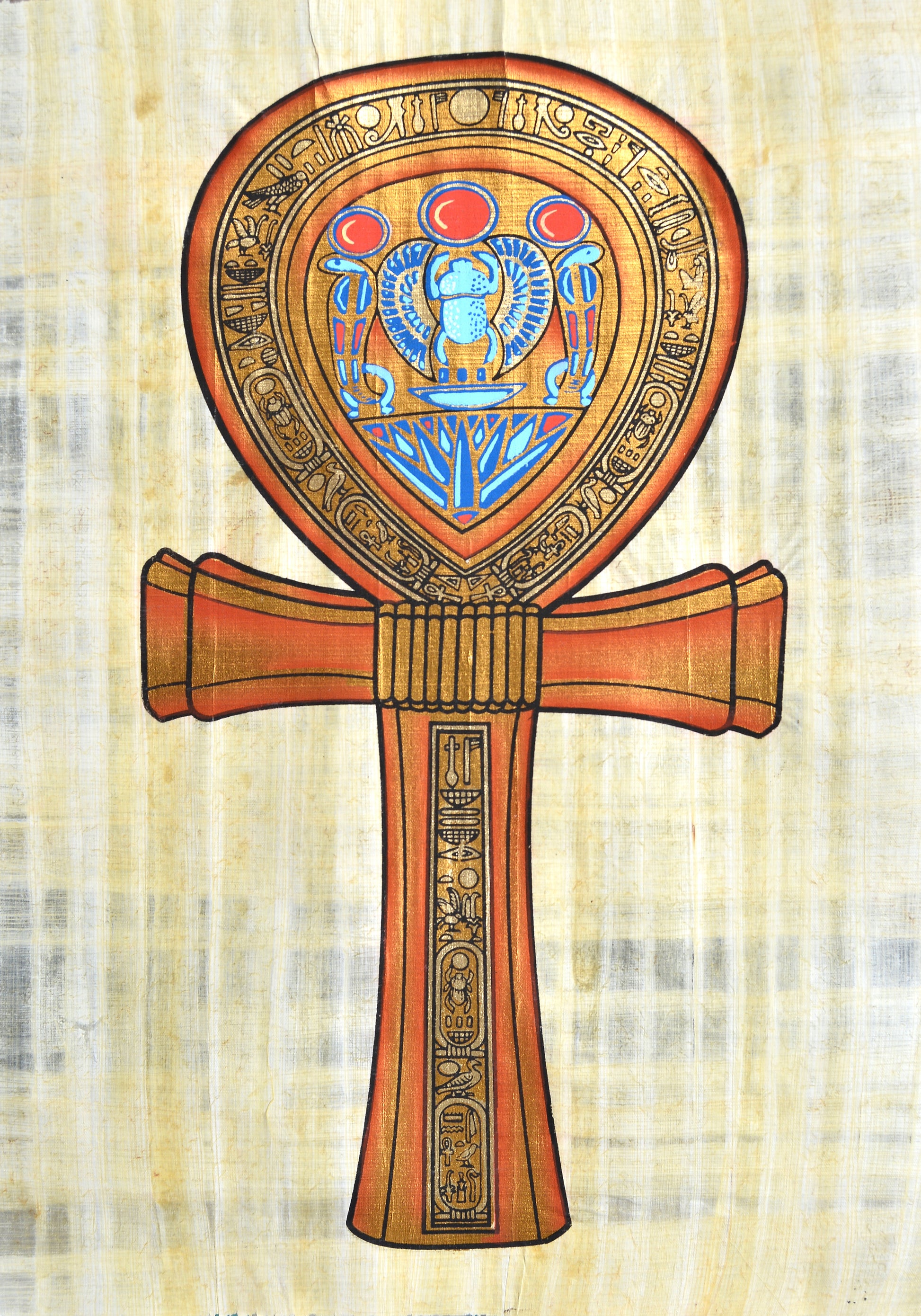 Handmade Papyrus Painting – Ankh (Key of Life, Ancient Egyptian Symbol)-40*60 cm